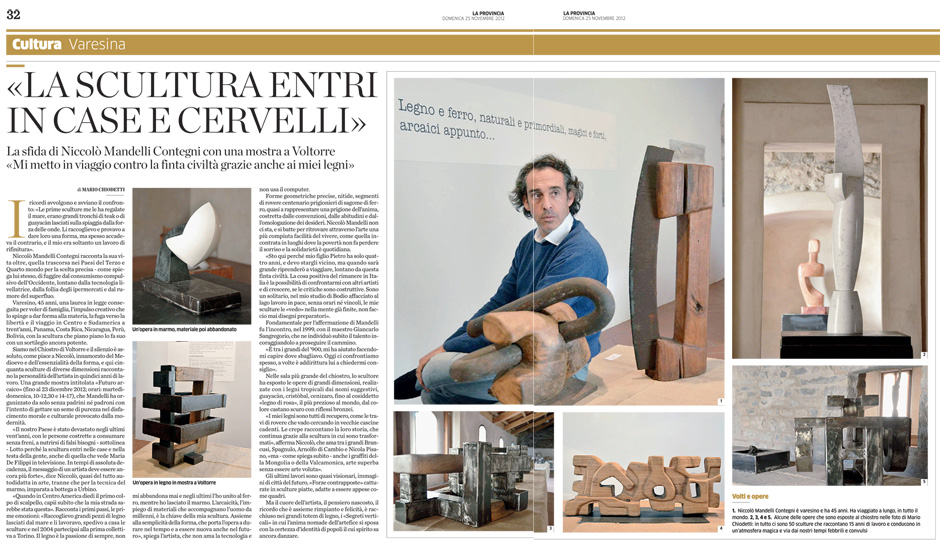 I ricordi avvolgono e avviano il confronto: «Le prime sculture me le ha regalate il mare, erano grandi tronchi di teak o di guayacàn lasciati sulla spiaggia dalla forza delle onde. Li raccoglievo e provavo a dare loro una forma, ma spesso accadeva il contrario, e il mio era soltanto un lavoro di rifinitura».